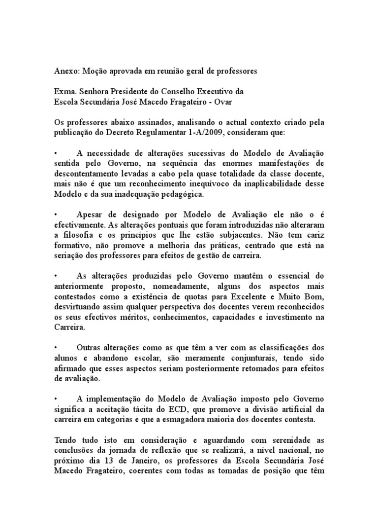 carreira em categorias e que a esmagadora maioria dos docentes contesta.