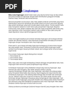 BAB III KESIMPULAN 1. Baku mutu lingkungan adalah batas kadar yang diperkenankan bagi zat atau bahan pencemar terdapat di lingkungan dengan tidak menimbulkan gangguan terhadap makhluk hidup, tumbuhan atau benda lainnya. 2. Jenis-jenis baku mutu lingkungan, baku mutu air, baku mutu limbah cair, baku mutu udara ambien, baku mutu udara emisi, dan baku mutu air laut. 3. Baku mutu untuk mencegah berlimpahnya limbah sehingga mengakibatkan baku mutu lingkungan tidak memenuhi syarat penghidupan bagi manusia.