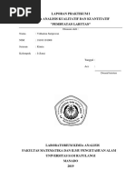 Penentuan Kadar Kesadahan Air dengan Metode Titrasi EDTA BAB I PENDAHULUAN 1.1 Latar Belakang Semua makhluk hidup di bumi ini butuh air. Air merupakan pelarut yang sangat baik, sehingga di alam umumnya berada dalam keadaan tidak murni. Air alam mengandung berbagai jenis zat, baik yang larut maupun yang tidak larut serta mengandung mikroorganisme. Jika kandungan bahan-bahan dalam air tersebut tidak mengganggu kesehatan, air dianggap bersih dan layak untuk diminum, air dikatakan tercemar jika terdapat gangguan terhadap kualitas air sehingga air tersebut tidak dapat digunakan untuk tujuan penggunaannya. Pencemaran air dapat terjadi karena masuknya makhluk hidup, zat, dan energi terdalam air oleh kegiatan manusia. Keadaan itu dapat menurunkan kualitas air sampai ke tingkat tertentu dan membuat air tidak berfungsi lagi sesuai dengan tujuan penggunaannya. Air adalah pelarut yang baik, sehingga dapat melarutkan zat-zat dari batu-batuan yang berkontak dengannya. Bahan-bahan mineral yang dapat terkandung dalam air karena kontaknya dengan batubatuan tersebut antara lain: CaCO3, MgCO3, CaSO4, MgSO4, NaCl, Na2SO4, SiO2 dan sebagainya. Dimana air yang banyak mengandung ion-ion kalsium dan magnesium dikenal sebagai air sadah. Air sadah adalah air yang di dalamnya terlarut garam-garam kalsium dan magnesium air sadah tidak baik untuk mencuci karena ion-ion Ca2+ dan Mg2+ akan berikatan dengan sisa asam karbohidrat pada sabun dan membentuk endapan sehingga sabun tidak berbuih. Senyawa-senyawa kalsium dan magnesium ini relatif sukar larut dalam air, sehingga senyawa-senyawa ini cenderung untuk memisah dari larutan dalam bentuk endapan atau precipitation yang kemudian melekat pada logam (wadah) dan menjadi keras sehingga mengakibatkan timbulnya kerak (Bintoro, 2008). Air sadah dibagi menjadi dua yaitu air sadah sementara dan air sadah tetap. Air sadah sementara yaitu air yang kesadahannya disebabkan oleh kalsium dan magnesium dari karbohidrat dan bikarbonat, sedangkan air sadah permanen atau tetap disebutkan oleh garam kalsium sulfat dan klorida. Manfaat penentuan kesadahan sementara dan kesadahan permanen yaitu untuk mengetahui tingkat kesadahan air karena air sadah dapat menimbulkan kerak sehingga dapat menyumbat pipa saluran air panas seperti radiator yang digunakan dalam mesin-mesin pertanian. EDTA (ethylene diamine tetraacetic) merupakan suatu kompleks kelat yang larut ketika ditambahkan ke dalam suatu larutan yang mengandung kation logam tertentu seperti Ca2+ dan Mg2+, di mana akan membentuk kompleks dengan logam-logam tersebut. Ketika ditambahkan suatu indikator EBT ke dalam larutan yang mengandung kompleks tersebut maka akan menghasilkan perbahan warna pada pH tertentu, sehingga dengan prinsip ini nilai kesadahan air dapat dianalisis.