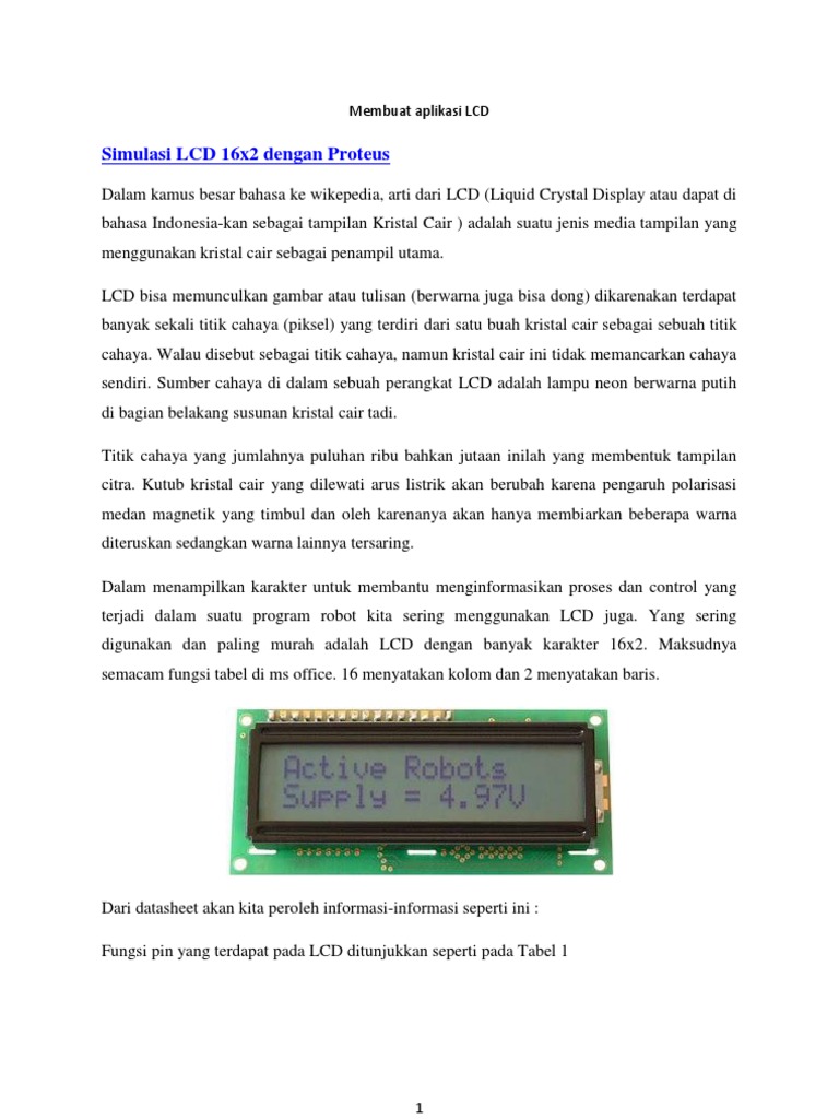 Dari datasheet akan kita peroleh informasi-informasi seperti ini : Fungsi pin yang terdapat pada LCD ditunjukkan seperti pada Tabel 1