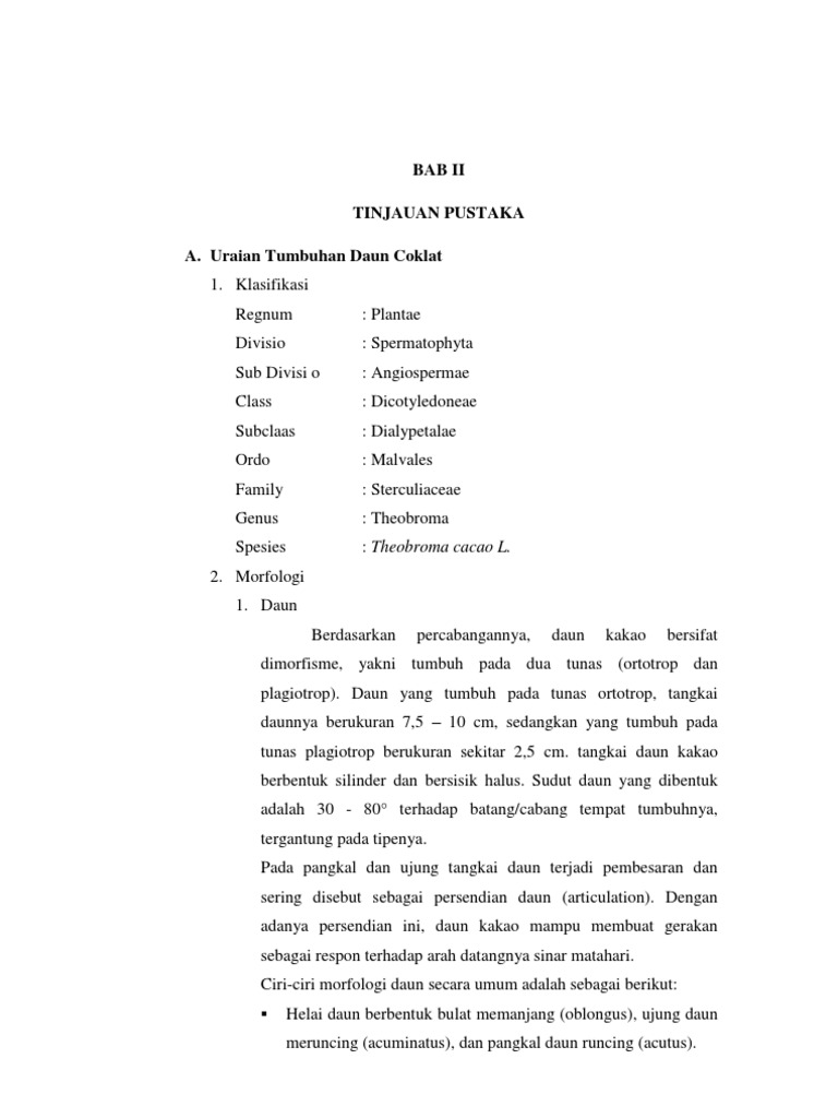BAB II TINJAUAN PUSTAKA A. Uraian Tumbuhan Daun Coklat 1.