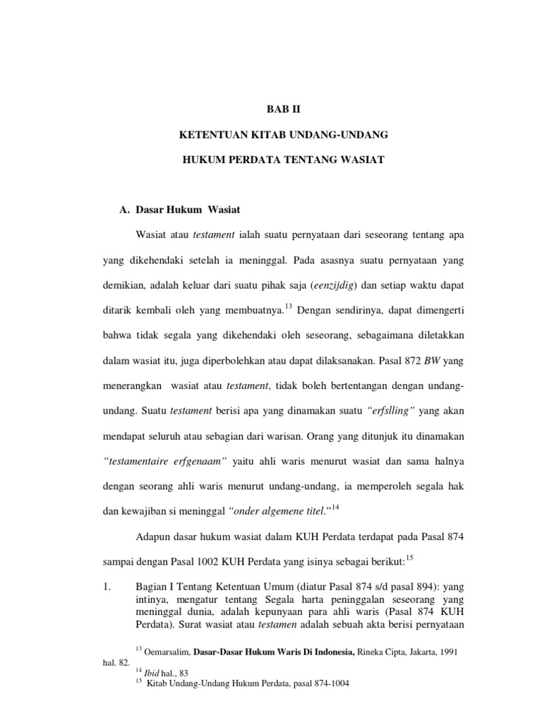 Oemarsalim, Dasar-Dasar Hukum Waris Di Indonesia, Rineka Cipta, Jakarta, 1991 Ibid hal., 83 Kitab Undang-Undang Hukum Perdata, pasal 874-1004