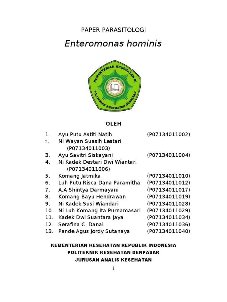 1. Kista dan trofozoit dari Enteromonas hominis biasanya terdapat dalam tinja. Infeksi