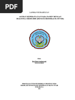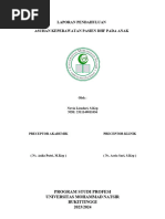 NO 1. [Link] Hypertermia b.d proses penyakit Subjektif:[Link] Mual Objektif: Kulit memerah Suhu tubuh meningkat diatas rentang normal Frekuensi nafas meningkat Kejang/konvulsi (Kulit) hangat bila disentuh Takikardia Tujuan Kriteria Standart Setelah dilakukan tindakan keperawatan 1x24 jam,Px akan menunjukkan Termoregulasi,dibuktikan dengan indikator gangguan sbb:(sebutkan 15:ekstrem,berat,sedang,ringan ,atau tidak ada gangguan) Suhu kulit dalam rentang yg diharapkan Suhu tubuh dlm batas normal Nadi dan pernafasan dlm rentang yg diharapkan Perubahan warna kulit tidak ada Keletihan dan mudah tersinggung tidak tampak Intervensi 1. Pantau aktivitas kejang 2. Pantau hidrasi (misalnya,turgor kulit,klembaban membran mukosa) 3. Pantau [Link],nadi,dan pernafasan 4. Pantau suhu minimal 2j am sesuai dengan kebutuhan 5. Pantau warna kulit dan suhu. Pendidikan untuk px/keluarga: 6. Ajarkan pasien atau keluarga dalam pengukur suhu untuk mencegah dan mengenali secara dini hipertermia. Regulasi suhu (NIC): 7. Ajarkan indikasi keletihan karena panas dan tindakan kedaruratan yang dibutuhkan. Aktivitas kolaborasi: 8. Regulasi suhu (NIC):berikan obat antiperatik,sesuai dengan kebutuhan: gunakan matras dingin dan mandi air hangat untuk mengatasi gangguan suhu tubuh,sesuai dengan kebutuhan. Rasional 1. Untuk mengetahui drajat demam pasien. 2. Demam tinggi dan gejala lainnya pada DHF menimbulkan kehilangan cairan. 3. untuk mengetahui kondisi umum pasien. 4. adanya hipertermi pada gejala DHF. 5. untuk mengetahui tanda-tanda kekurangan cairan. 6. Agar klien mandiri sehingga dapat meminta pertolongan medis secara cepat. 7. Agar klien mampu mengatasi permasalahan secara cepat. 8. Untuk menurunkan atau menormalkan suhu tubuh. 9. Agar panas dapat menguap, sehingga suhu dapat stabil. 10. Untuk mengompres pasien. 11. Untuk mengganti kehilangan cairan 12. Untuk mengurangi panas pada tubuh pasien (menurunkan suhu) 13. Sebagai penurun suhu tubuh 14. menangani permasalahan dengan tepat.