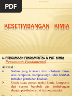satunya dipengaruhi wujud zat. Beberapa faktor yang mempengaruhi perubahan entropi suatu sistem, yaitu: Perubahan Temperatur Entopi meningkat seiring dengan kenaikan temperatur. Kenaikan temperatur tersebut menunjukkan kenaikan energi kinetik rata-rata partikel. Keadaan Fisik dan Perubahan Fasa Bila suatu reaksi kimia terjadi perubahan dari keadaan teratur menjadi kurang teratur dikatakan perubahan entropinya (S) positif. Namun, bila pada suatu reaksi kimia terjadi perubahan dari keadaan kurang teratur menjadi teratur dikatakan perubahan entropinya (S) negatif. Pelarutan Solid atau Liquid Entropi solid atau liquid terlarut biasanya lebih besar dari solut murni, tetapi jenis solut dan solven dan bagaimana proses pelarutannya mempengaruhi entropi overall. Pelarutan Gas Gas begitu tidak teratur dan akan menjadi lebih teratur saat dilarutkan dalam liquid atau solid. Entropi larutan gas dalam liquid atau solid selalu lebih kecil dibanding gas murni.Saat O2 (S(g) = 205,0J/mol K) dilarutkan dalam air, entropi turun drastis (S(aq) = 110,9 J/mol K). Ukuran Atom atau Kompleksitas Molekul Perbedaan entropi zat dengan fasa sama tergantung pada ukuran atom dan kompleksitas molekul. A. Entropi dan Hukum Kedua Termodinamika 1. Sistem alami cenderung kearah tidak teratur, random, distribusi partikel kurang teratur. 2. Beberapa sistem cenderung lebih tidak teratur (es meleleh) tetapi ada juga yang lebih teratur (air membeku) secara spontan . 3. Dengan meninjau sistem dan lingkungan terlihat semua proses yang berlangsung dalam arah spontan akan meningkatkan entropi total