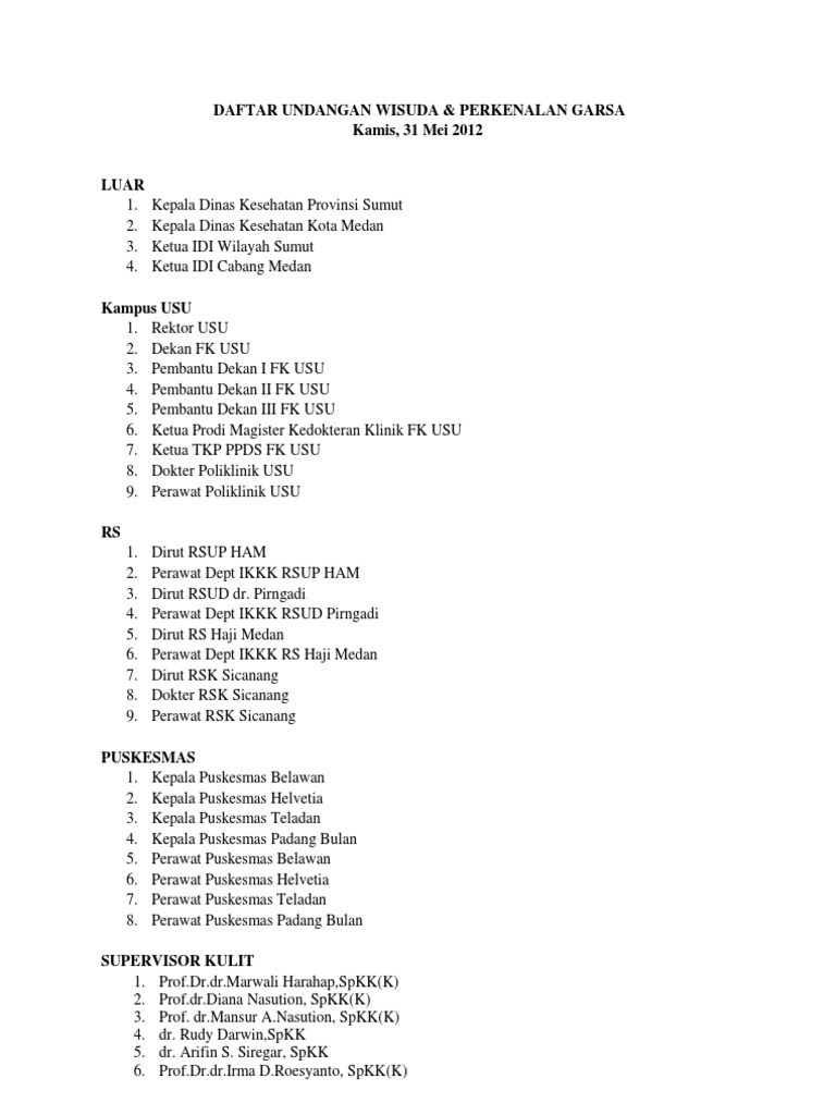 DAFTAR UNDANGAN WISUDA & PERKENALAN GARSA Kamis, 31 Mei 2012