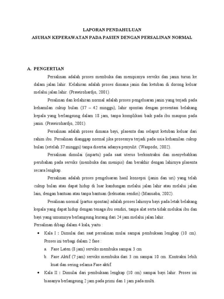 LAPORAN PENDAHULUAN ASUHAN KEPERAWATAN PADA PASIEN DENGAN PERSALINAN NORMAL