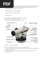 menembus benda padat dengan baik, maka ketika menggunakan alat, penting sekali untuk memperhatikan luas langit yang dapat dilihat. Faktor-faktor yang mempengaruhi ketelitian antara lain : Jenis receiver (Geodetic atau Navigasi) Jenis data (pseudorange atau fase pembawa) Metoda penentuan posisi (differensial, absolut, dll) Kondisi ionosfer dan troposfer Efek multipath Ketelitian data (ephemeris dll) Geometri satelit Teknik pemrosesan data PDOP adalah singkatan dari Precision Dilution of Position. PDOP adalah suatu estimasi atas akurasi koordinat yang didasarkan pada distribusi satelit. PDOP membantu untuk mengetahui akurasi relatif koordinat yang diberikan GPS. Ketika receiver telah mengkalkulasi posisinya dari sekurang-kurangnya empat satelit, receiver tersebut mengkalkulasi estimasi akurasi menurut geometri atau distribusi satelit pada saat pembacaan. Setiap angka PDOP di bawah 7 adalah dapat digunakan, tetapi semakin kecil PDOP maka akurasi yang dihasilkan akan semakin bagus, bahkan direkomendasikan: tunggu hingga mendapat PDOP kurang dari 3 , kenapa menunggu karena satelit-satelit selalu bergerak secara relatif terhadap satu sama lainnya dan terhadap posisi GPS. Ketika satelit berdekatan (memberi angka PDOP yang tinggi), maka pada akhirnya satelit-satelit tersebut akan bergerak ke arah konfigurasi yang lebih baik (memberi angka PDOP yang rendah). Beberapa GPS juga menampilkan informasi tentang status 24 satelit, setiap model receiver menampilkan informasi ini secara berbeda, umumnya informasi perihal satelit yang temukan dan menarik adalah : 1. Jumlah satelit 2. Status dan kekuatan sinyal dari setiap satelit yang tampak 3. Posisi setiap satelit dengan azimuth dan sudut diatas horison. Agar penggunaan GPS bisa efektif maka pilihlah secara hati-hati dimana harus menggunakannya. GPS dapat menerima sinyal satelit hanya jika tidak ada halangan di atas antena. Ini berarti bahwa GPS tidak bermanfaat di hutan lebat, di lembah yang sangat curam, antena eksternal bagi beberapa receiver yang dapat dinaikan pada suatu tiang untuk mencapai ketinggian di atas kanopi hutan yang rendah, akan tetapi biasanya lebih mudah untuk memungkinkan lokasi yang lebat tersebut adalah memasang receiver pada tempat terdekat yang terbuka. 7.7. Perekaman Data GPS di Lapangan Harus dipastikan bahwa titik koordinat yang direkam adalah koordinat yang bagus dan menuliskan semua informasi penting tentang tempat tersebut, anda dapat dibuat form khusus untuk mencatat koordinat GPS atau dapat dibuat sebuah halaman khusus di notebook lapangan anda.