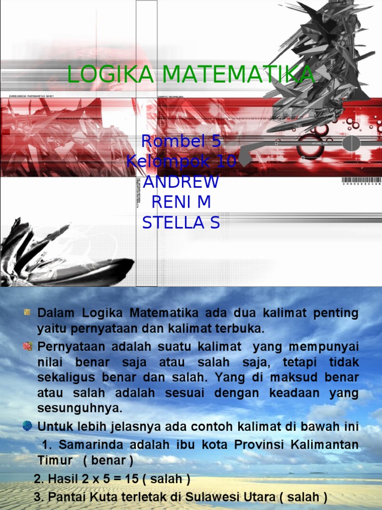Untuk Logika matematika ada 5 macam penghubung pernyataan yaitu