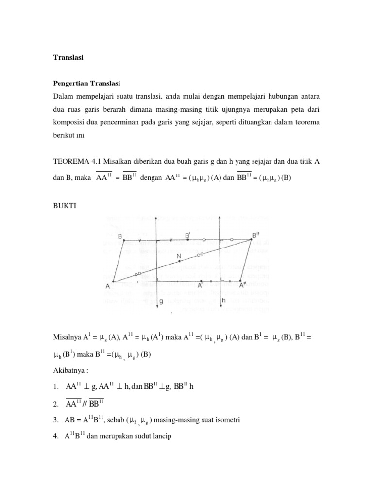 Transformasi seperti ini, dinamakan suatu translasi (geseran). Sampailah anda sekarang