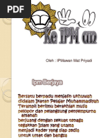 Selain itu FORTASI juga di gunakan sebagai sarana pengkaderan bagi IPM yang benar-benar berjiwa IPM. Perkaderan ini lebih bersifat prakondisi, yakni berusaha mengantarkan tementemen dan mempersiapkan temen-temen kepada proses selajutnya. So setelah kegiatan ini minimal kalian paham dan tahu serta akan tertarik untuk terlibat didalam Ikatan Pelajar Muhamadiyah (IPM). Dan beberapa hal yang penting dalam FORTASI adalah FORTASI bukan pekaderan formalitas belaka yang dilaksanakan untuk memenuhi konsekuen sebagai pelajar Muhammadiyah, tapi juga untuk menumbuhkan kecintaan pada organisasi. IPM juga merupakan wadah yang bersifat ideologis, ritual yang luas dan fleksibel serta memungkinkan untuk mewadahi minat temen-temen pelajar yang beraneka ragam yang tumbuh bukan karena keterpaksaan namun timbul dengan sendirinya tanpa ada paksaan. Dalam FORTASI pun ada beberapa hal utama yang menentukan, yakni : 1. 2. 3. 4. 5. Penyampaian materi Peserta Instrumen-instrumen Metode dan pendekatan Pengaturan atau terjadwal