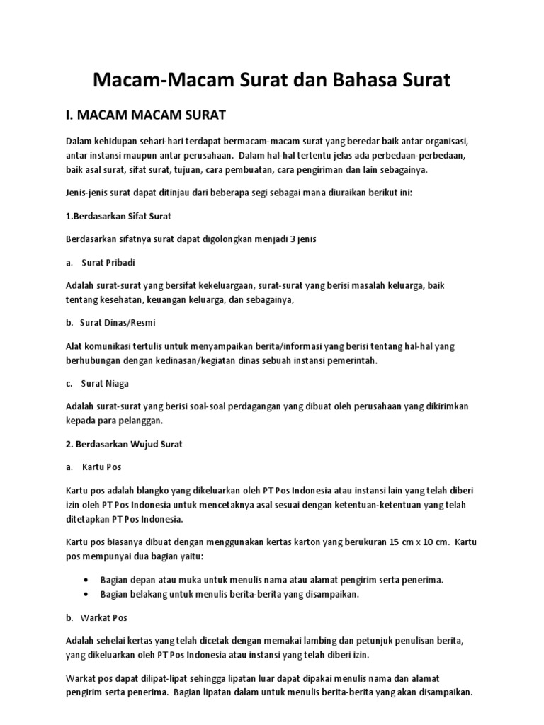 Macam-Macam Surat dan Bahasa Surat