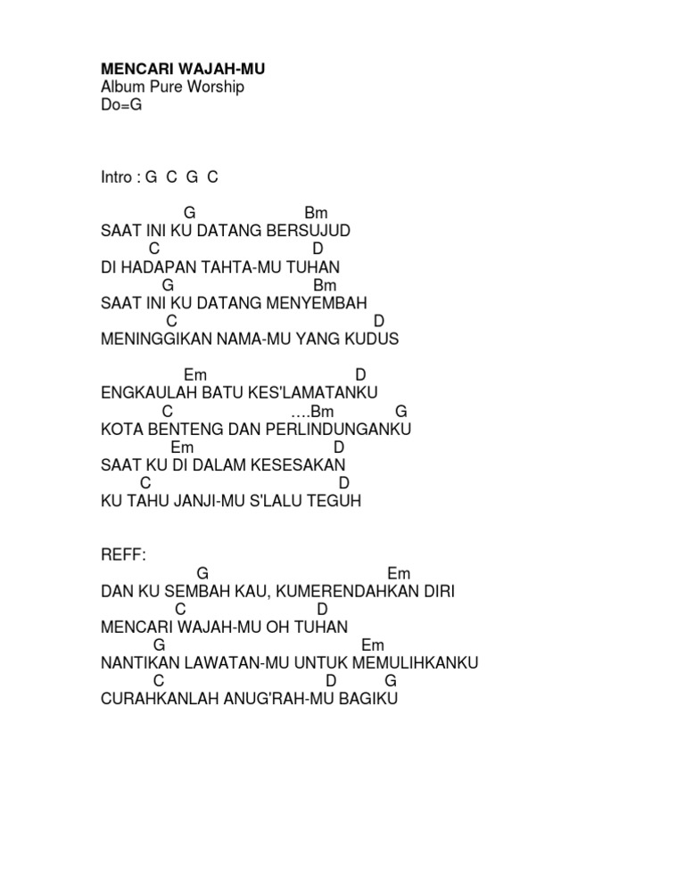 MENCARI WAJAH-MU Album Pure Worship Do=G