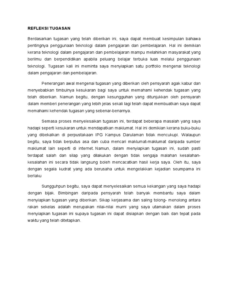 REFLEKSI TUGASAN Berdasarkan tugasan yang telah diberikan ini, saya dapat membuat kesimpulan bahawa pentingnya penggunaan