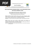 b. Setiap pertanyaan harus diberikan batasan jawaban yang diharapkan. c. Materi yang ditanyakan harus sesuai dengan tujuan peugukuran. d. Materi yang ditanyakan harus sesuai dengan jenjang jenis sekolah atau tingkat kelas. 2. Konstruksi a. Menggunakan kata tanya/perintah yang menuntut jawaban terurai. b. Ada petunjuk yang jelas tentang cara mengerjakan soal. c. Setiap soal harus ada pedoman penskorannya. d. Tabel, gambar, grafik, peta, atau yang sejenisnya disajikan dengan jelas, terbaca, dan berfungsi. 3. Bahasa a. Rumusan kalimat soal harus komunikatif. b. Menggunakan bahasa Indonesia yang baik dan benar (baku). c. Tidak menimbulkan penafsiran ganda. d. Tidak menggunakan bahasa yang berlaku setempat/tabu. e. Tidak mengandung kata/ungkapan yang menyinggung perasaan peserta didik. H. Penulisan Soal Bentuk Pilihan Ganda Menulis soal bentuk pilihan ganda sangat diperlukan keterampilan dan ketelitian. Hal yang paling sulit dilakukan dalam menulis soal bentuk pilihan ganda adalah menuliskan pengecohnya. Pengecoh yang baik adalah pengecoh yang tingkat kerumitan atau tingkat kesederhanaan, serta panjangpendeknya relatif sama dengan kunci jawaban. Oleh karena itu, untuk memudahkan dalam penulisan soal bentuk pilihan ganda, maka dalam penulisannya perlu mengikuti langkahlangkah berikut, langkah pertama adalah menuliskan pokok soalnya, langkah kedua menuliskan kunci jawabannya, langkah ketiga menuliskan pengecohnya. Untuk memudahkan pengelolaan, perbaikan, dan perkembangan soal, maka soal ditulis di dalam format kartu soal. Setiap satu soal ditulis di dalam satu format. Adapun formatnya seperti berikut ini.