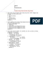 botol 600ml dan botol 1500ml terlebih dahulu harus dibersihkan dengan menggunakan larutan sanitizer dan setelah itu AC dihidupkan. Selain sanitasi ruangan, mesin produksi juga perlu disanitasi. Mesin cup disanitasi dengan cara dibersihkan pocket/ mould atau conveyor dan body mesin dengan menggunakan larutan sanitizer. Pada mesin botol 600ml, 1500ml dan botol 5 gallon bagian conveyor, body mesin dan nozel filling dibersihkan dengan larutan sanitizer. Tangki penampungan juga disanitasi maksimal satu bulan sekali dengan larutan sanitizer. Tangki stainless steel atau tangki penampungan air jadi minimal 3 bulan sekali dengan larutan sanitizer. Selain itu karyawan atau personil yang berhubungan langsung dengan produk jadi juga harus diperhatikan. Standar operasional prosedur yang diterapkan di PT. Duta Putra Lexindo adalah membersihkan tangan dan kaki sebelum bekerja menggunakan alkohol, memakai baju kerja, memakai tutup kepala, memakai tutup mulut (masker), menggunakan sarung tangan,tidak memakai arloji,gelang, cincin dan aksesori lainnya, memakai sepatu bot dan tidak dalam keadaan sakit. Pada proses pengisian air minum dalam kemasan cup,botol 600 ml, botol 1500ml dan botol 5 gallon, karyawan dan operator yang akan masuk ruangan produksi harus menerapkan standar operasional prosedur yang berlaku tersebut. Sebelum pengisian dimulai kemasan yang akan diisi dibilas dengan air produksi terlebih dahulu. Setelah diisi, pengamatan secara visual dilakukan pada akhir conveyor untuk melihat apakah ada benda asing yang ikut terisi. Untuk menjamin lancarnya proses produksi dan terjaminnya mutu air minum dalam kemasan, sejumlah peralatan atau mesin-mesin yang digunakan di PT. Duta Putra Lexindo mengalami perawatan secara rutin. Filter carbon dan pasir kwarsa dibersihkan setiap pagi dan sore dengan cara membalikkan posisi 6 valve yang ada pada filter carbon dan pasir kwarsa. Setelah air yang keluar benarbenar bersih ,posisi valve dikembalikan lagi ke posisi semula. Membran pada mesin reverse osmosis diganti setahun sekali atau jika mengalami penyumbatan. Jaminan Mutu Produk Produk jadi sebelum dipasarkan harus dilakukan inspeksi terlebih dahulu untuk menjamin mutunya baik dipasaran. Inspeksi dan pengujian produk jadi meliputi uji parameter fisika (bau, rasa, dan warna), pH, kimia (TDS, conductivity, dan turbidity) dan mikrobiologi uji koliform. Inspeksi dan pengujian dilakukan dengan cara mengambil tiga sampel dimana satu satu sampel untuk diuji pada saat itu, satu sampel untuk arsip dan satu sampel lainnya diuji pada hari keenam. Sampel yang diuji pada hari keenam ini untuk melihat bagaimana kondisi dan mutu produk air minum dalam kemasan yang berada setelah beberapa hari di pasaran. Selain itu seluruh parameter yang teruji dalam SNI 01-3553-2006 dilakukan uji di laboratorium yang ditujukan oleh Menperindag atau terakreditasi KAN. Pengawasan mutu produk jadi juga mencakup pengendalian atas produk yang tidak sesuai. Produk air minum dalam kemasan cup, botol 5 gallon, botol 600ml dan 1500ml yang bocor atau tidak terisi penuh air harus dipisahkan dari ruang produksi untuk dilakukan penanganan. Seluruh produk yang mengalami ketidaksesuaian harus diidentifikasi dan diselidiki penyebabnya. Penyebab terjadinya ketidaksesuaian biasanya disebabkan berbagai faktor seperti mesin