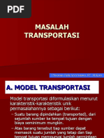 a. Tentukan penyelesaian layak pertama dengan menggunakan metode NWC dan LC b. Uji penyelesaian layak pertyama tersebut dengan metode stepping stone c. Evaluasi biaya yang dihasilkan dari menerapkan kedua metode tersebut. 6. Berdasarkan pada soal nomer 5 diatas, selesaikan kasus tersebut dengan: a. Metode Vogel b. Metode MODI c. Bandingkan kedua metode tersebut dalam hal kemudahan penerapannya dalam menyelesaikan kasus. 7. PT Mitra Utama mempunyai empat gudang yang terletak di kota lain. Setiap gudang menyimpan suatu jenis barang tertentu yang dibutuhkan oleh lima pengecernya. Tergantung pada biaya transportasi dan harga yang dibayar pengecer, keuntungan per unit berbeda sesuai dengan dari gudang mana barang dikirim dan pengecer mana yang membelinya. Besarnya keuntungan per unit, jumlah unit komoditi yang tersedia pada setiap gudang, dan permintaan yang diajukan setiap pengecer ditunjukkan pada tabel-tabel di bawah ini: Gudang A B C D Pengecer 1 4 3 5 2 Keuntungan Per unit (Rp) Pengecer 2 Pengecer 3 Pengecer 4 5 2 6 4 3 7 7 6 8 6 4 5 Pengecer 5 6 5 7 4