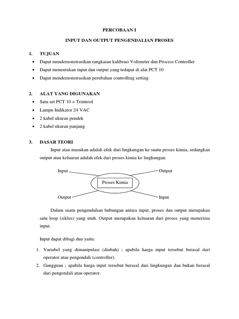 PERCOBAAN I INPUT DAN OUTPUT PENGENDALIAN PROSES 1.