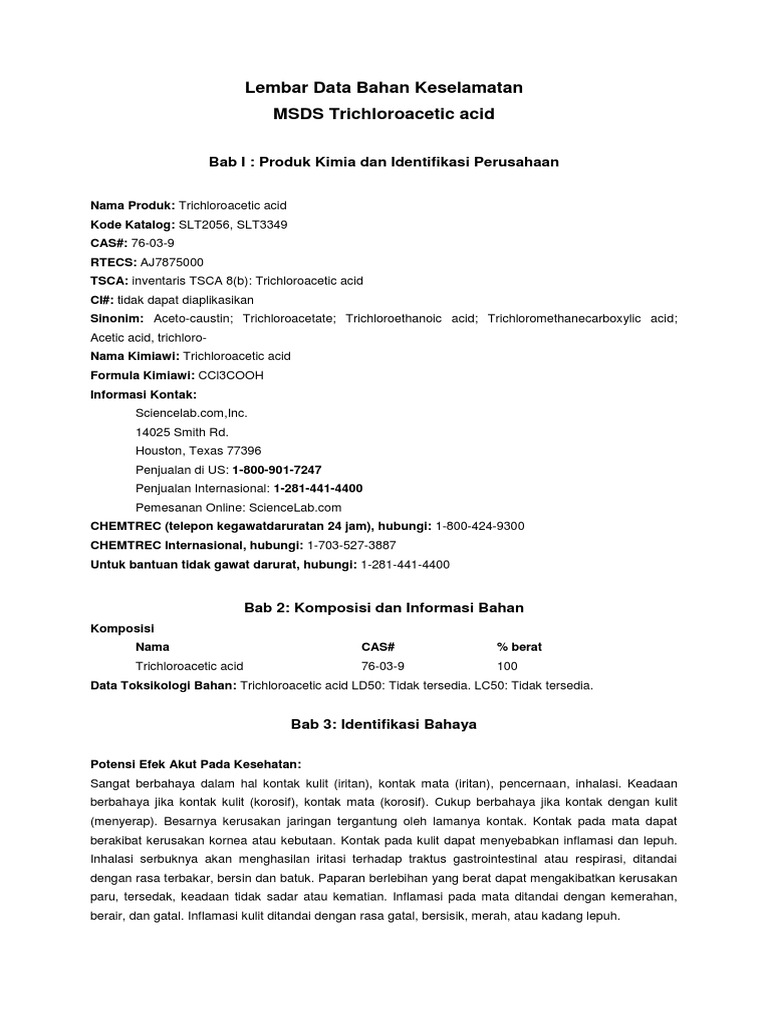 Lembar Data Bahan Keselamatan MSDS Trichloroacetic acid