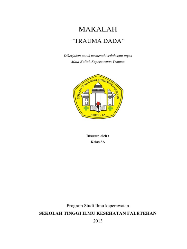 Puji syukur kami panjatkan kehadirannya Allah SWT yang telah melimpahkan rahmat dan hidayahnya kepada kami sehingga kami dapat menyusun makalah ini dengan tepat pada waktunya. Shalawat serta salam tercurahkan kepada junjungan nabi kita Muhammad SAW beserta para sahabatnya. Makalah ini di buat untuk memenuhi tugas mata kuliah Keperawatan Trauma dimana makalah ini berisi tentang Trauma Dada. Penulis menyadari bahwa tanpa bantuan dari pihak lain maka penulis tidak akan dapat menyelesaikan makalah ini. Oleh karena itu pada kesempatan ini penulis menyampaikan terima kasih yang tulus kepada semua pihak yang telah membantu menyelesaikan makalah ini.