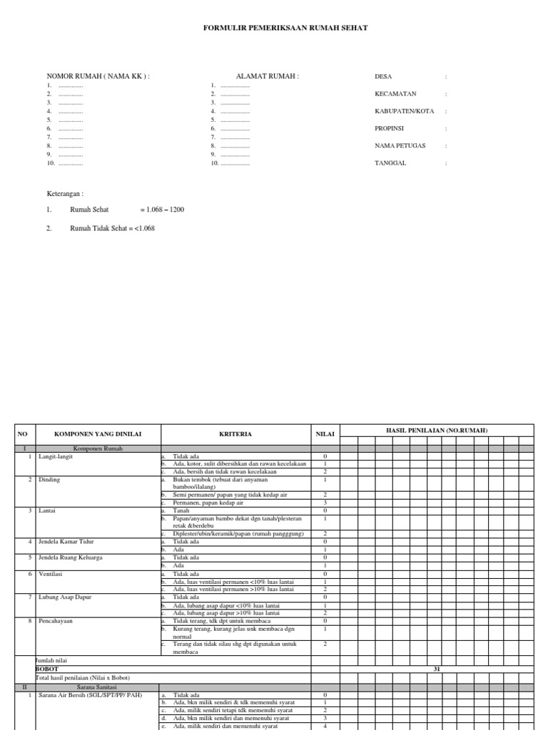 FORMULIR PEMERIKSAAN RUMAH SEHAT