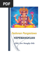 bersembunyi! -a lari naik pohon kelapa serta bersembunyi di dalamnya dan berubah wujud menjadi janur! 2etika janur mau ditebas ia berubah lagi menjadi $ayadenawa! $ayadenawa sebagai simbul ;aja ;aksasa yang tidak percaya dengan adanya .uhan! 2arena kesaktian dan keangkuhannya membuatnya takabur! $enyamakan dirinya dengan 2emahakuasaan yang dimiliki .uhan, walau kenyataannya tidak seperti itu! Hal ini pula yang menyebabkan ia melarang umat untuk memuja apalagi mempersembahkan upacara kepada .uhan! )idorong oleh kesombongannya membuatnya menjadi celaka! (ehingga sampai sekarang bagi umat yang menggunakan janur sebagai bahan upakara selalu membuang tepi janur, selain karena kurang indah dan secara #iloso#is membuang tepi janur mengandung makna membuang segala keangkuhan dan kesombongan dalam melaksanakan upacara yajna!