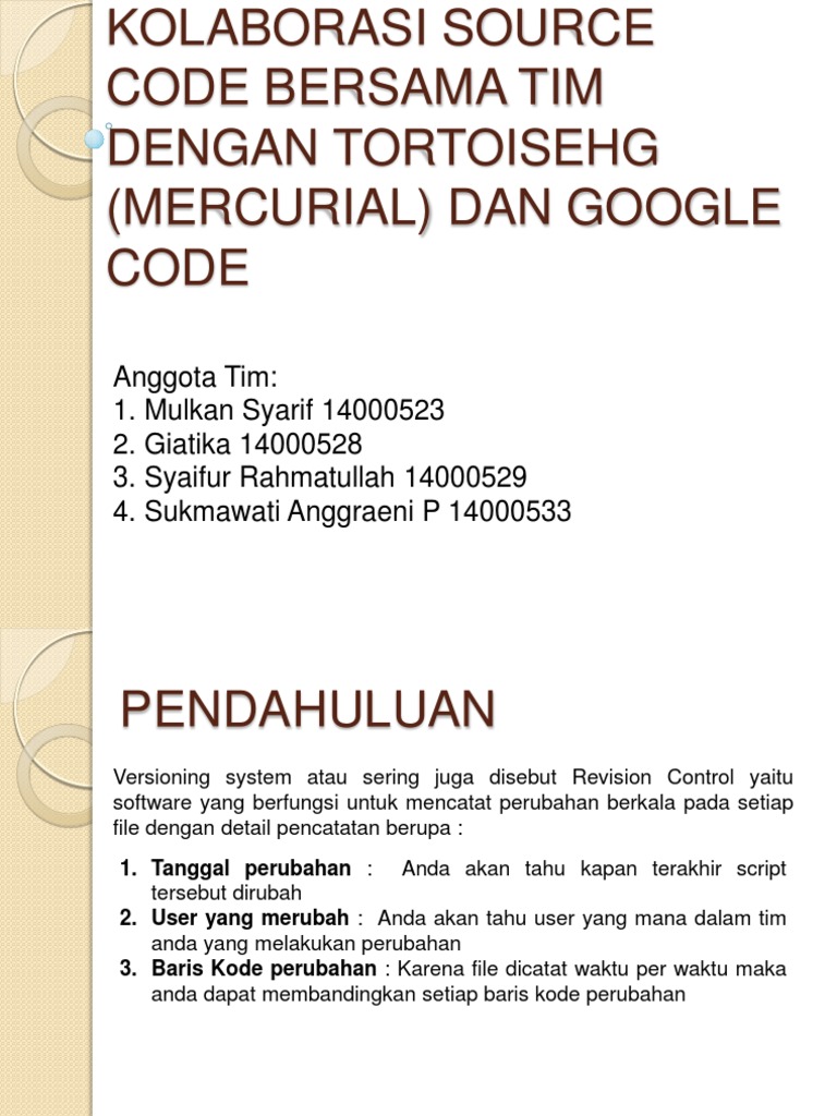 KOLABORASI SOURCE CODE BERSAMA TIM DENGAN TORTOISEHG (MERCURIAL) DAN GOOGLE CODE