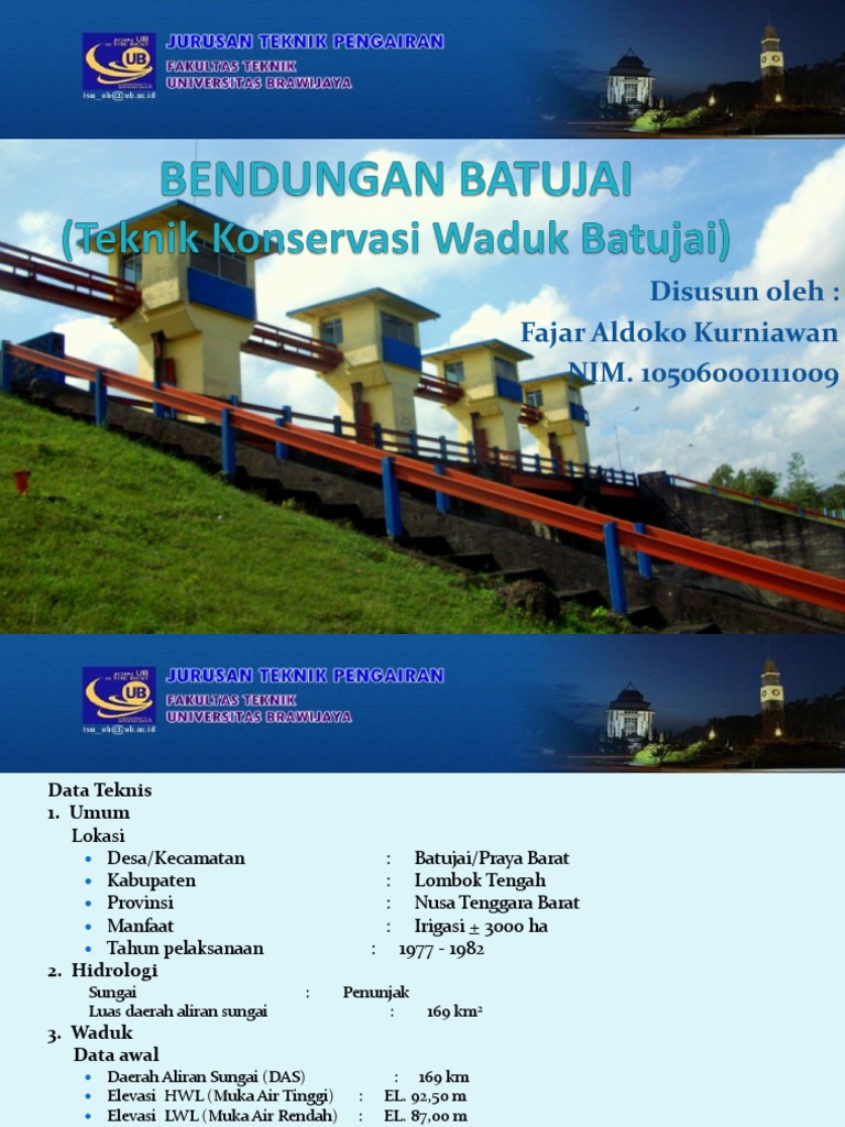 Batujai/Praya Barat Lombok Tengah Nusa Tenggara Barat Irigasi + 3000 ha 1977 - 1982