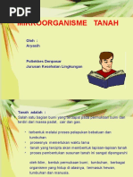 Perhitungan Total populasi (CFU) g-1 tanah kering = (jumlah koloni) x (fp) bk tanah Keterangan: fp = faktor pengenceran pada cawan Petri yang koloninya dihitung bk = berat kering contoh tanah (g) = berat basah x (1 kadar air)