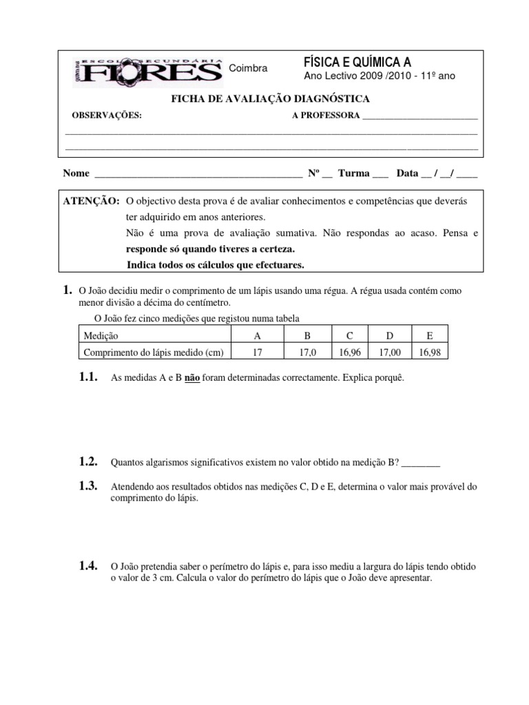 1. O João decidiu medir o comprimento de um lápis usando uma régua. A régua usada contém como
