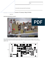 Di beberapa Negara, bahkan di beberapa call-area di dalam negeri mungkin offset frequency diset berbeda (misalnya 500 KHz), jadi silah dicek sendiri dulu offset frequency di lokasi masingmasing PL atau CTSS Tone PL adalah singkatan Private Line, sebutan yang dipakai pada produk-produk Motorola bagi fitur yang oleh pabrikan lain disebut CTSS atau CTCSS (Continuous Tone-coded Squelch System) atau sistim squelch (mematikan RX) dengan kode tone yang berkesinam- bungan, suatu fitur yang digunakan untuk mencegah repeater melayani sinyal-sinyal yang tidak dikehen- daki atau QRM yang berlebihan. Dengan fitur ini repeater hanya dapat diakses oleh rig/ HT yang dapat mengirimkan tone tertentu. Contoh: Kalau repeater di-set untuk hanya terpicu (untuk memancar ulang) kalau RX-nya menerima misal- nya PL Tone 136.5 Hz (hertz), maka TX pada repeater tersebut hanya akan bekerja (activated) kalau diakses dengan rig/HT yang dapat di-set atau dilengkapi de- ngan PL tone 136.5 Hz pula. Dengan kata lain, kalau rig/HT anda tidak memancarkan tone 136.5 Hz, maka RX pada repeater tidak akan mendengar pancaran anda, dan tentunya repeater tidak akan melayani pang- gilan anda. Karenanya, repeater yang dilengkapi PL atau CTSS (atau CTCSS) disebut juga repeater yang eksklusip atau tertutup. ADAB ber-repeater 1. SEBELUM masuk ke frekuensi repeater, sempat- kan untuk MONITOR, monitor dan monitor (LISTEN, listen and listen), untuk memastikan bahwa re- peater tidak sedang digunakan (idle). 2. Kalau sudah pasti repeater sedang idle, pencet mike anda selama 1-2 detik untuk membangunkan repeater yang anda tuju (dan memastikan bahwa sinyal anda cukup kuat untuk membangunkan repeater tersebut). Kemudian panggil setasiun yang anda cari, dengan cepat tapi jelas dengan satu dua kali menyebut call sign lawan diikuti call sign anda sendiri (contoh: YBCOX, Yan- kee Bravo Zero Charly Oscar X-ray, this is (= di sini) YF1AR ). 3. Kalau YBCOX tidak merespons pada panggilan pertama, dengan mengambil jeda 1015 detik ulangi kembali panggilan anda. Biasakan untuk tidak memanggil lebih dari dua kali. 4. Kalau sudah pasti YBCOX tidak mendengar pang- gilan anda, seperti juga pada waktu anda masuk, pamitlah baik-baik dengan menyebutkan: YF1AR clear .. Dengan demikian setasiun lain, yang mungkin antri di belakang anda akan tahu bahwa anda sudah tidak akan menggunakan repeater dan dia (atau mereka) mendapat kesempatan untuk menggunakannya. 5. Kembali ke langkah awal (1), kalau anda mendapati repeater sedang digunakan, pada saat jeda singkat antara dua transmisi, masuklah dengan cepat dan jelas dengan menyebutkan call sign anda: YF1AR ... Atau bisa juga dengan hanya menyebutkan dua huruf terakhir suffix anda: Alpha Romeo .. tapi laku- kan ini HANYA kalau anda tahu rekan yang sedang menggunakan repeater tersebut mengenal anda dengan baik, dan dapat langsung mengenali anda. 6. Kalau salah satu dari setasiun yang sedang meng- gunakan repeater tersebut menerima sinyal anda dan mempersilahkan anda masuk, mintalah izin untuk memanggil rekan yang anda cari (YBCOX) dan lakukan langkah 2 dan 3. 7. Kalau YBCOX tidak merespons, pamitlah baik-baik (dengan imbuhan ungkapan terima kasih atau thank you), atau kalau anda memang menghendaki, mintalah izin untuk bergabung.