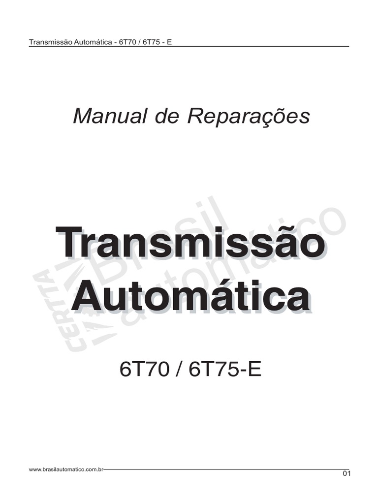 6T70 : 450 Nmem primeira marcha 515 Nm nas demais marchas 6T75 : 515 Nm Rotao mxima de entrada: 7.000 RPM Peso mximo do veculo: 1.745 Kg a 2.360 Kg Tipo de uido: DEXRON VI Capacidade de uido: Conversor de torque de 246 mm (seco) 9,0 litros aproximadamente. Peso da transmisso x peso do conversor de torque 6T70: 103 Kg 6T75: 105 Kg Dimetro do conversor: 246 mm Relao de multiplicao de torque do conversor 1,7 Fator K do conversor: 172 K Tomadas de presso disponveis: Presso de linha www.brasilautomatico.com.br