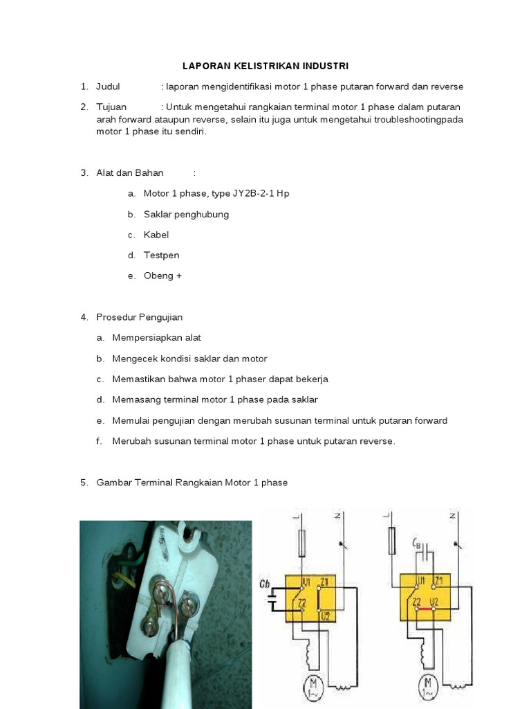 Judul : laporan mengidentifikasi motor 1 phase putaran forward dan reverse