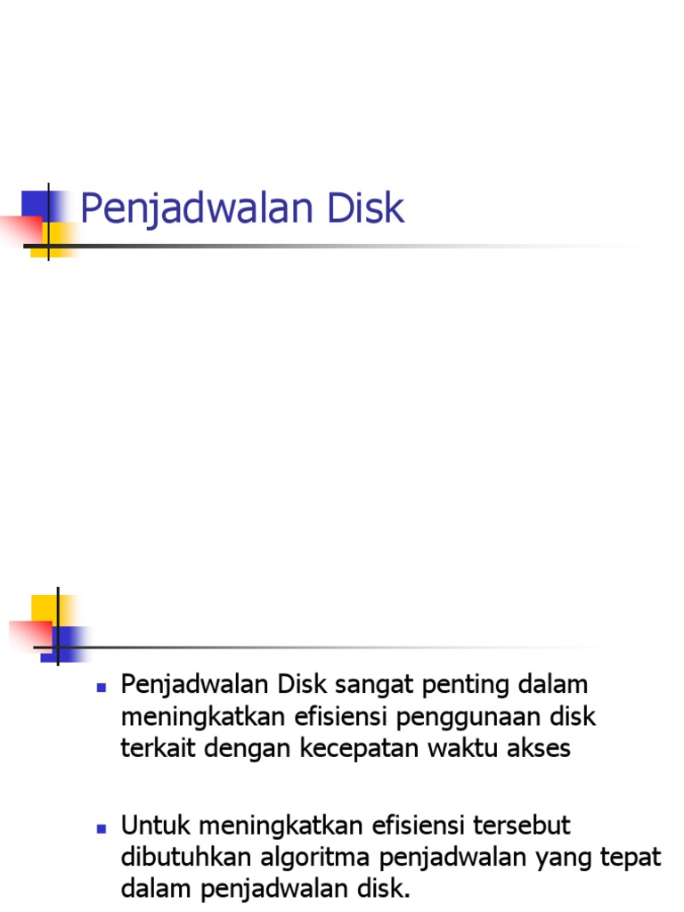 Untuk meningkatkan efisiensi tersebut dibutuhkan algoritma penjadwalan yang tepat dalam penjadwalan disk.