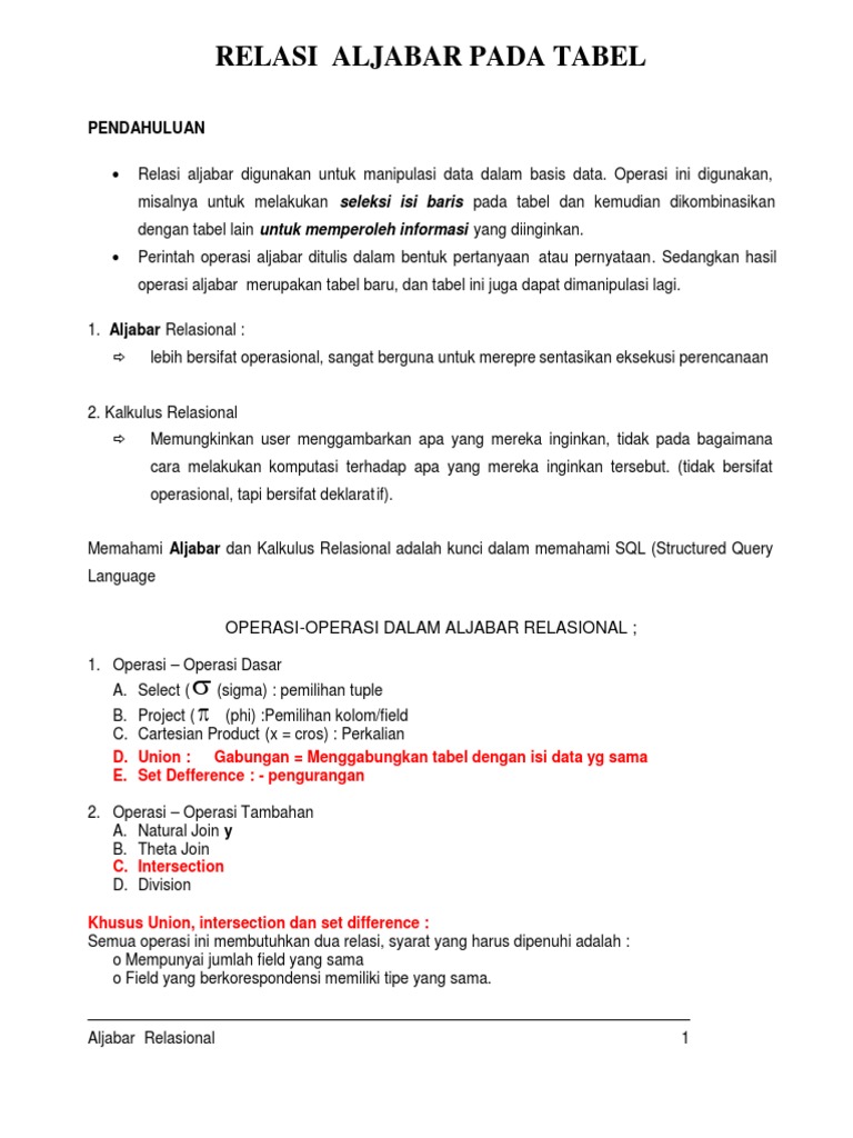RELASI ALJABAR PADA TABEL