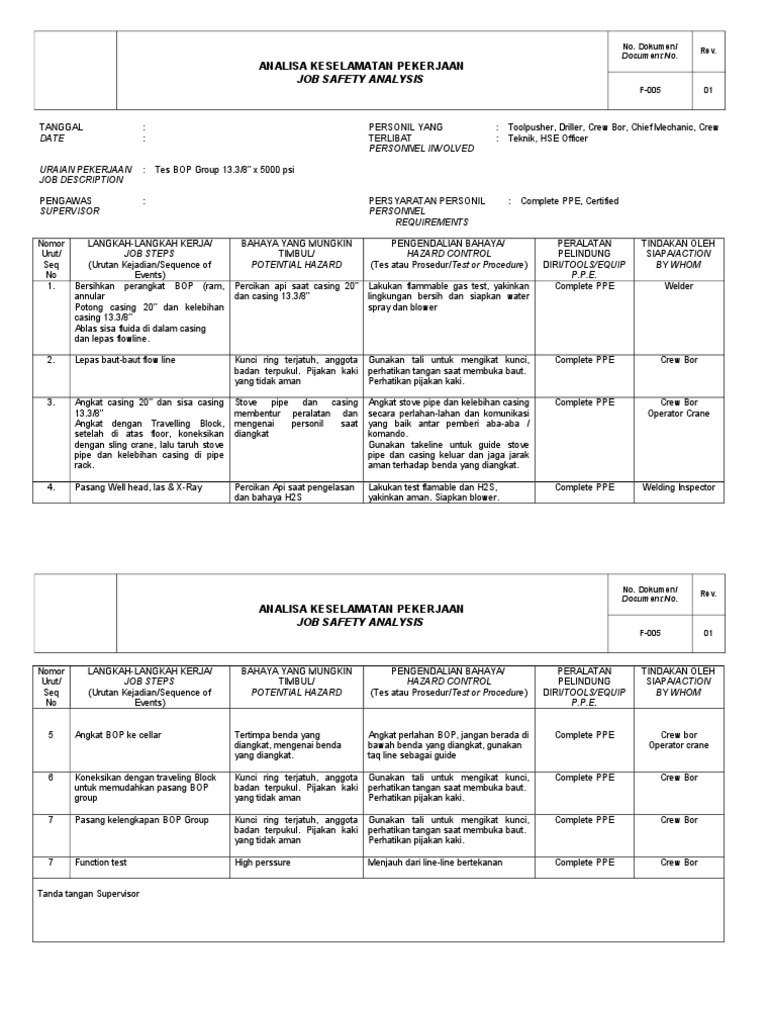 JOB SAFETY ANALYSIS