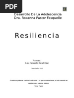 En este libro podemos observar la famosa casita que nombraremos, seguramente en nuestra exposicin, puesto que nos ha servido de gran ayuda en nuestro monogrfico. Realizar un breve resumen de lo que sta significa: en esta Casita cada habitacin refiere un campo de intervencin posible para la construccin o el mantenimiento de la resiliencia. En primer lugar est el suelo sobre el que se construye, hace referencia a las necesidades bsicas, como la alimentacin, la salud... Luego tenemos los cimientos, que estn constituidos por los vnculos, ya sean formales o informales. Se trata a menudo de un vnculo fuerte y constructivo con al menos una persona (familiar, compaeros de clase, conocido, profesor). En todos los casos es una persona que cree verdaderamente en el potencial real del nio y que lo acepta como persona. En la planta baja se encuentra la capacidad de descubrirle un sentido a la vida.