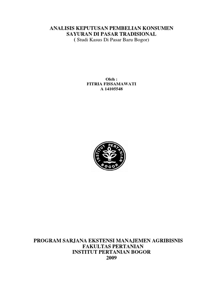 Judul Skripsi : Analisis Keputusan Pembelian Konsumen Tradisional ( Studi Kasus Pasar Baru Bogor ) Sayuran Di Pasar