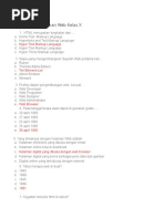 e. Table dari HTML jawaban : c 32. Dalam HTML, dapat ditambahkan hubungan/relasi ke link lain. Berikut ini adal ah command dari link yang apabila di klik akan menuju ke www.google.com adalah . a. <Href a www.google.com> </a> b. <a href www.google.com> </a> c. <a href="www.google.com"></a> d. <ke= www.google.com> </a> e. <pindah ke www.google.com> </a> jawaban : c 33. Berikut ini adalah urutan command dari pembuatan bullet and numbering. Nomor berapakah yang salah??? 1. </ol> 2. <li> aku</li> 3. <list>cinta</list> 4. <li> kamu</li> 5. <ol><end> a. 1,3,5 b. 1,2,4 c. 1,2,3 d. 1,5,3 e. 2,3,4 jawaban : a 35. Perintah untuk membuat teks berjalan adalah a. <marquee> b. <b> c. <br> d. <bg color> e. <map> Jawaban A 35. Perintah untuk menyatukan 3 baris pada sebuah tabel adalah a. <td colspan=3> b. <td colspan= 3 > c. <td rowspan=3> d. <td rowspan= 3 > e. <td rowspan= 3 > Jawaban C 36. Jika kita menuliskan perintah © , maka pada html akan muncul a. ? b. c. d. ? e. @ Jawaban C 37. Hasil dari & adalah : a) & b) % c) @ d) $ e) ! Jawabannya = A 38. Apa kepanjangan dari HTML? a) Hyper text mail language b) Hyper text mark up language