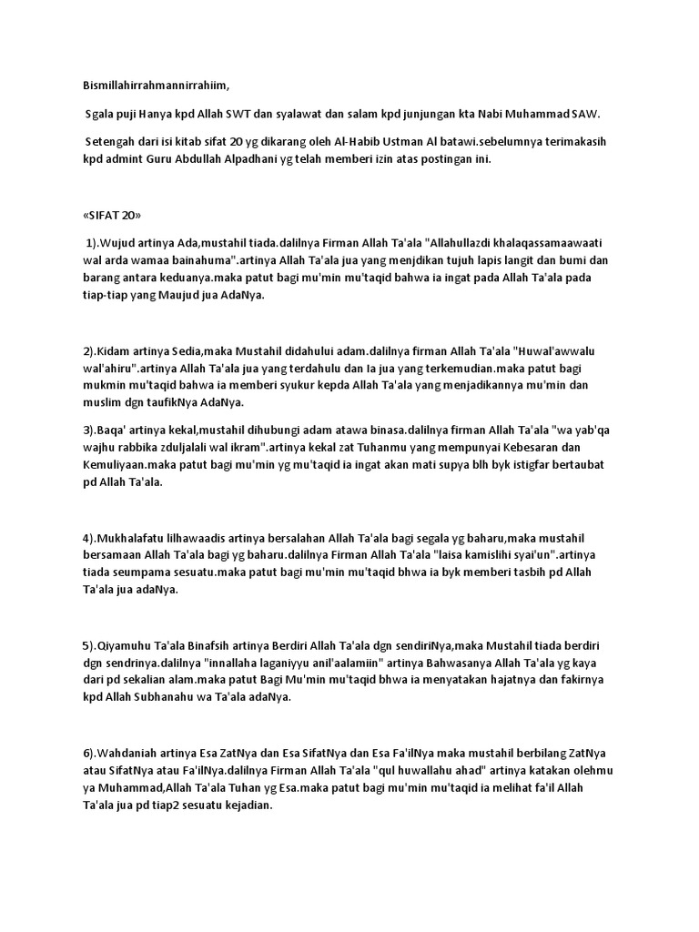 Muhammad SAW. Setengah dari isi kitab sifat 20 yg dikarang oleh Al-Habib Ustman Al batawi.sebelumnya terimakasih kpd admint Guru Abdullah Alpadhani yg telah memberi izin atas postingan ini.