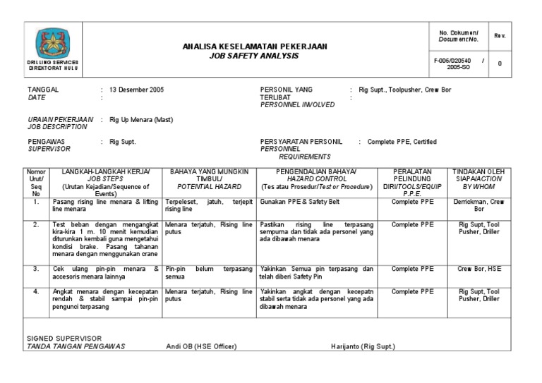 ANALISA KESELAMATAN PEKERJAAN
