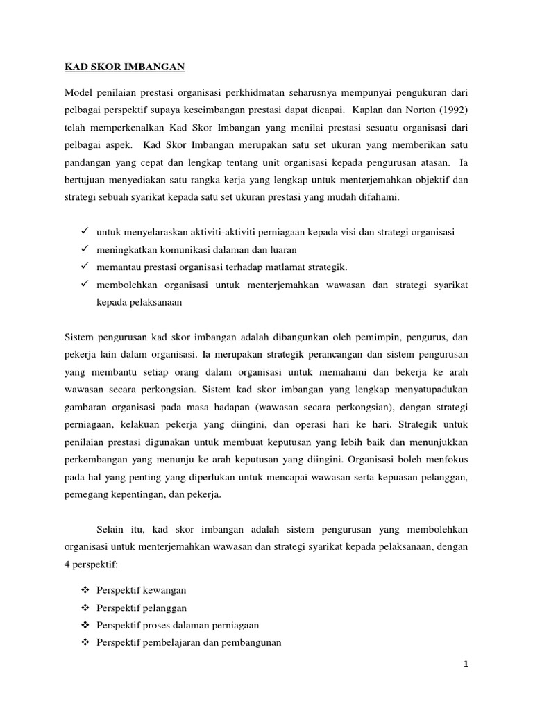 pelbagai aspek. Kad Skor Imbangan merupakan satu set ukuran yang memberikan satu