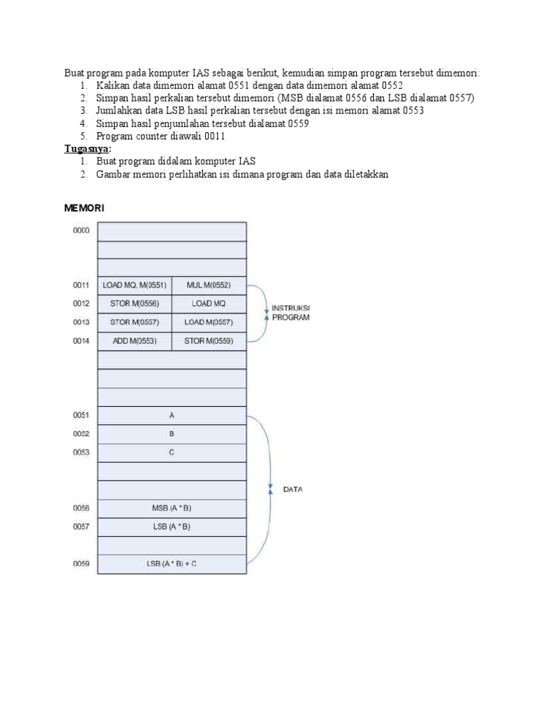 Buat program pada komputer IAS sebagai berikut, kemudian simpan program tersebut dimemori: