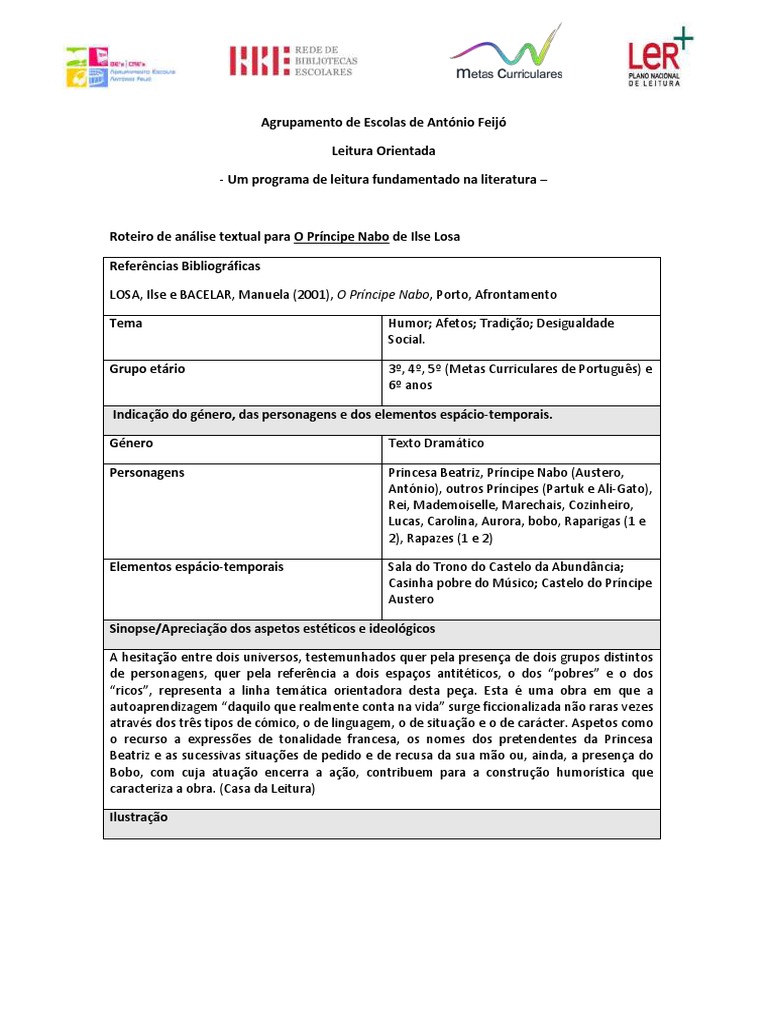 Roteiro de anlise textual para O Prncipe Nabo de Ilse Losa