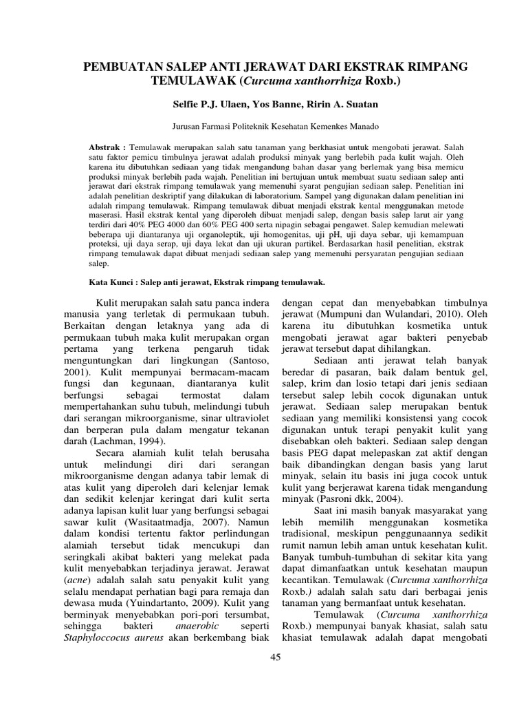 Kata Kunci : Salep anti jerawat, Ekstrak rimpang temulawak.