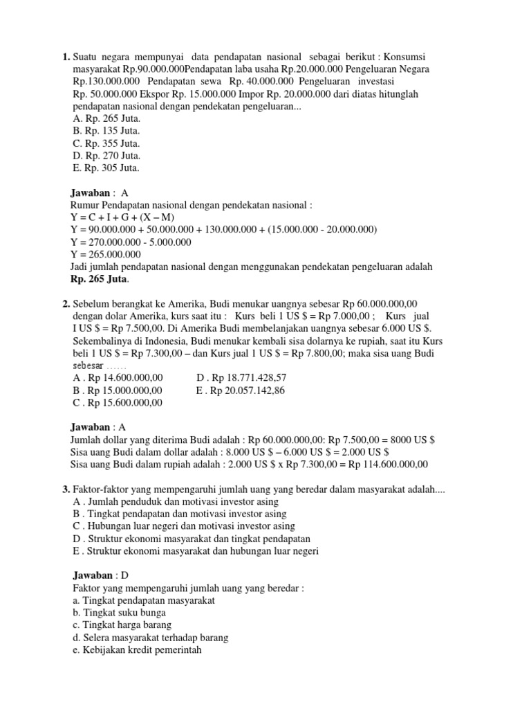 3. Faktor-faktor yang mempengaruhi jumlah uang yang beredar dalam masyarakat adalah....