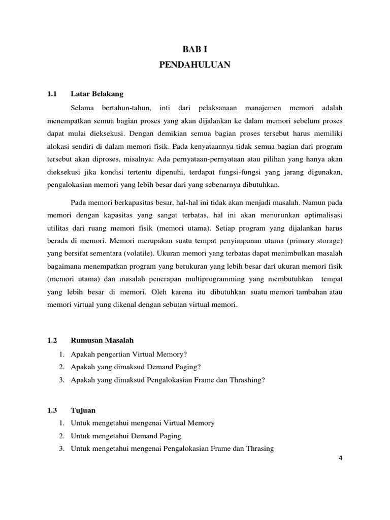 program. Tanpa memori virtual, memori logis akan langsung dibawa ke memori fisik