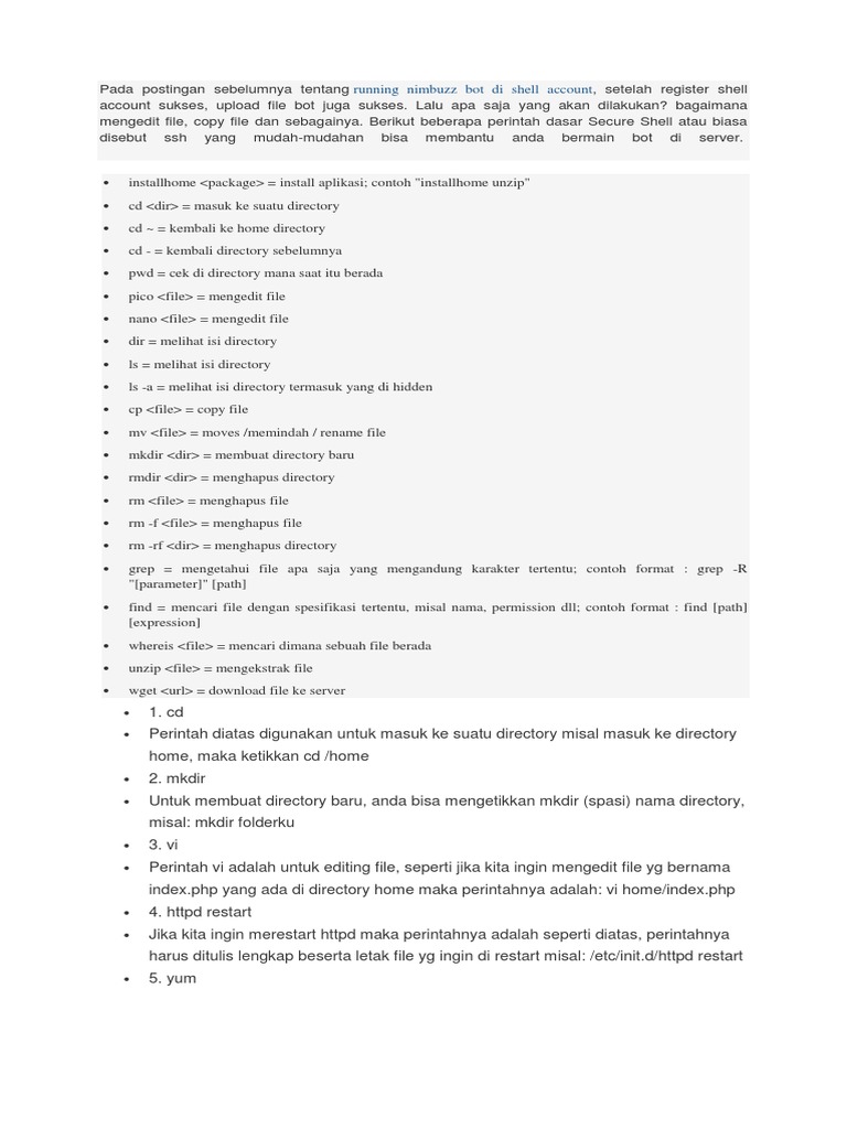 mengedit file, copy file dan sebagainya. Berikut beberapa perintah dasar Secure Shell atau biasa