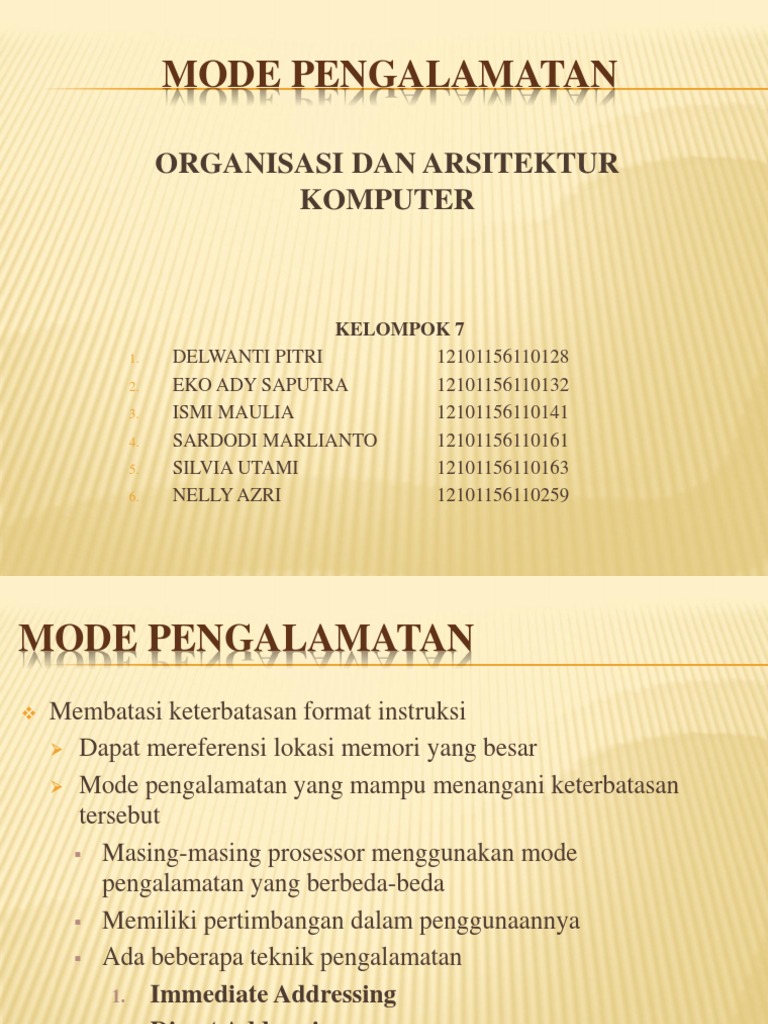 - Mede pengalamatan dapat dilakukan secara implisit atau