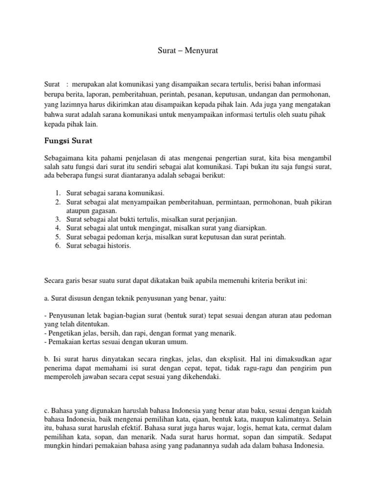 salah satu fungsi dari surat itu sendiri sebagai alat komunikasi. Tapi bukan itu saja fungsi surat,